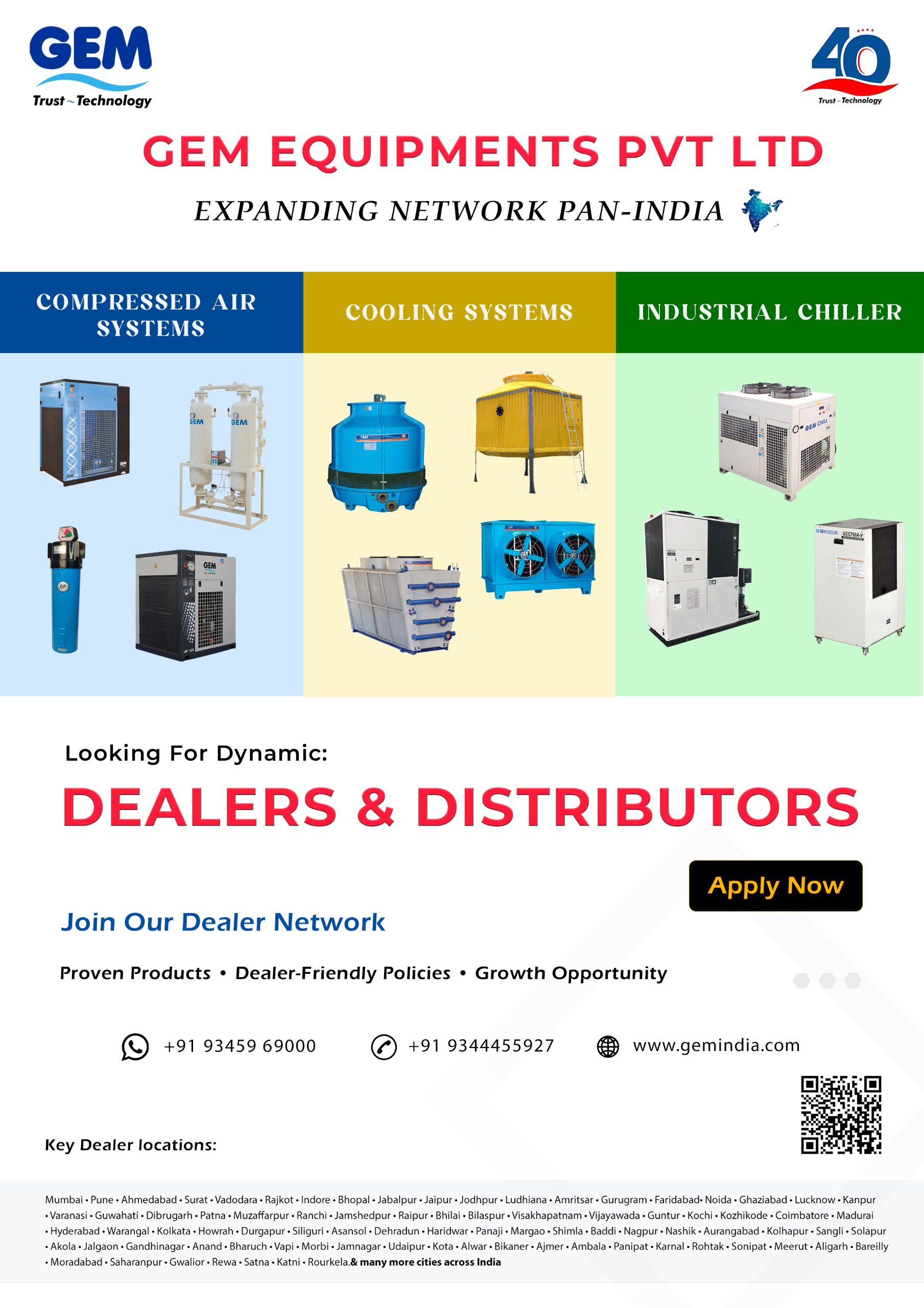 Gem Equipments entered the engineering and fabrication industry in 1984. We specialise in design, engineering and fabrication of Cooling Towers, Compressed Air Dryers, Industrial Chillers and Compressed Air Treatment Accessories.